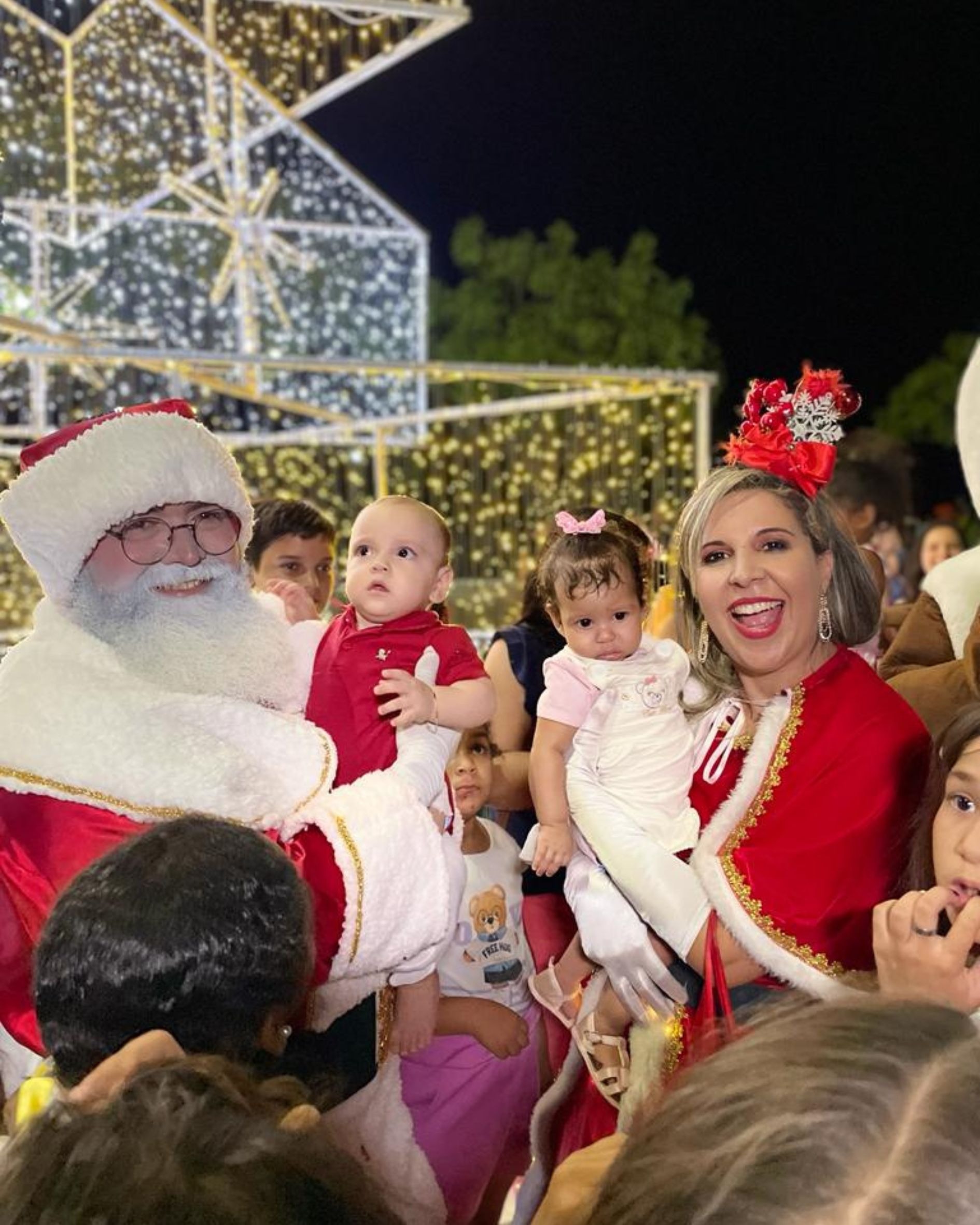 Famílias e amigos se reuniram na praça central, iluminada com a magia do Natal. O Papai Noel, acompanhado de sua animada bandinha, distribuiu sorrisos, enquanto pipoca, sorvete e algodão doce contribuíram para uma atmosfera festiva e alegre.