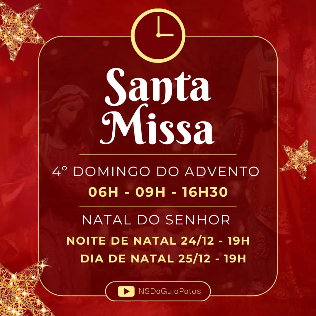 A Catedral de Patos, Nossa Senhora da Guia, convida todos os fiéis para celebrar a solenidade do Natal do Senhor nos dias 24 e 25 de dezembro (domingo e segunda-feira).