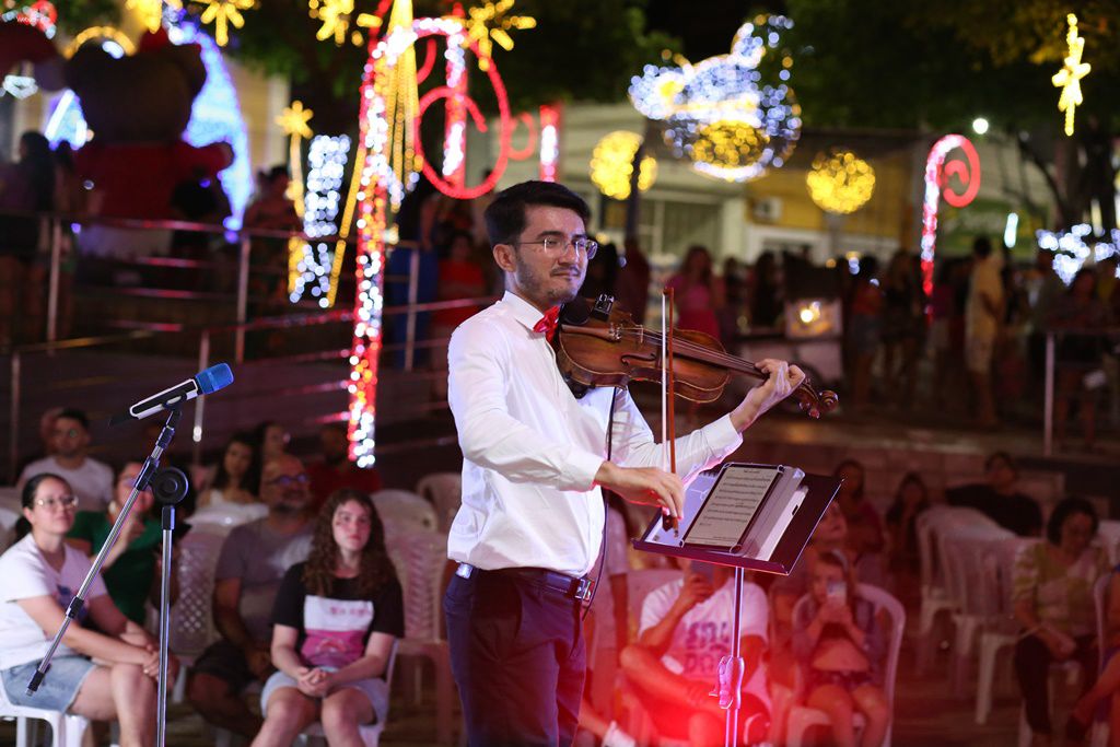 Ao lado de Felippi Ariel, que é violonista, tocaram: Marley Dias, violoncelista, e Caio, na bateria. Além da apresentação, a praça Edvaldo Motta recebeu um grande público, que se espalhou pelos ambientes com decorações em mais uma noite de encontro das famílias.