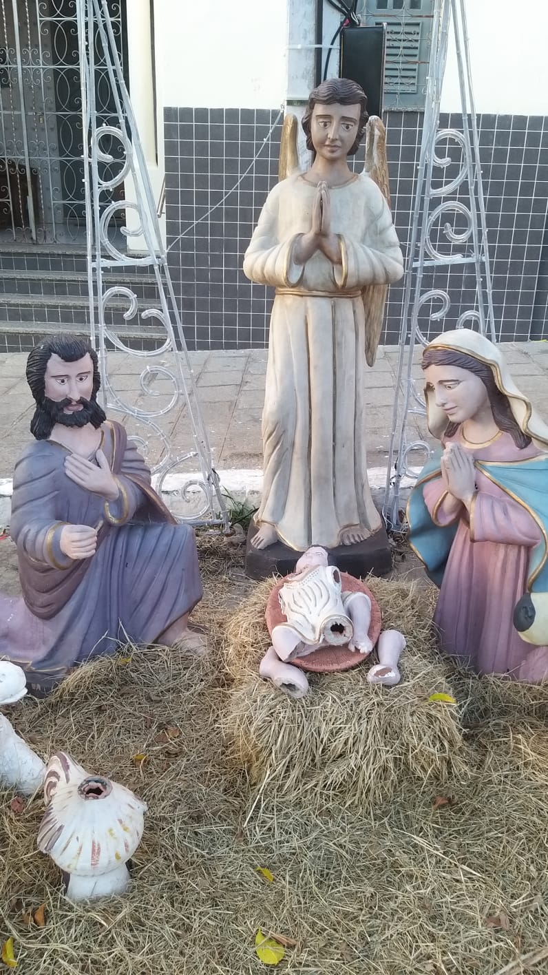 A imagem que simboliza o nascimento do Menino Jesus no Presépio de Natal, na Praça Edvaldo Motta, no centro de Patos, foi alvo de intolerância e ódio.