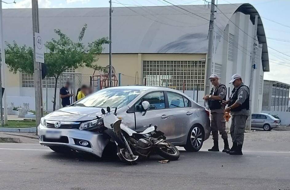 De acordo com informações apuradas pelo Patosonline.com, o sinistro aconteceu por volta das 15h, quando uma motoclicleta modelo Honda Bros de cor branca, que seguia pela Avenida Manoel Mota, colidiu na lateral de um carro Honda Civic de cor prata, que saía da Rua Jovino Lustosa e adentrava na avenida principal.