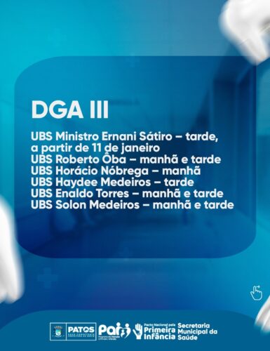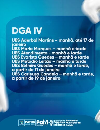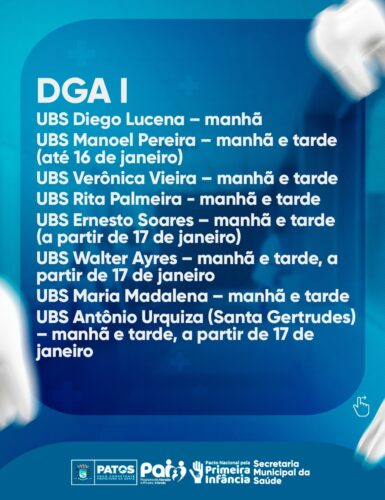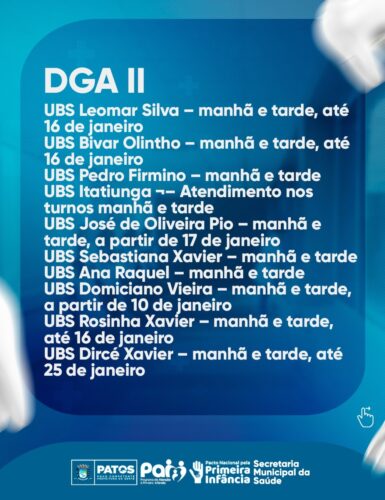Ao destacar a importância desse cronograma especial, a Secretaria Municipal de Saúde enfatiza a necessidade de a população ficar atenta às datas, locais (unidades de saúde) e horários estipulados para cada DGA.