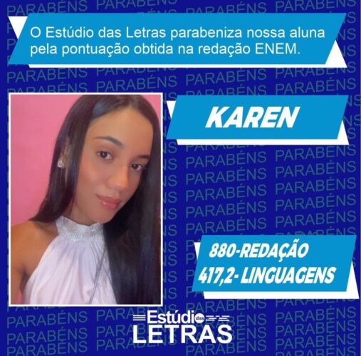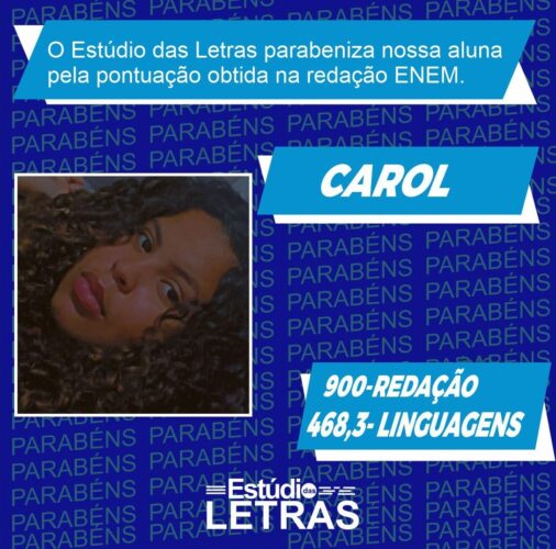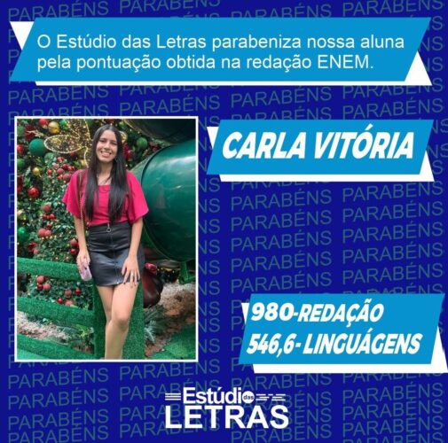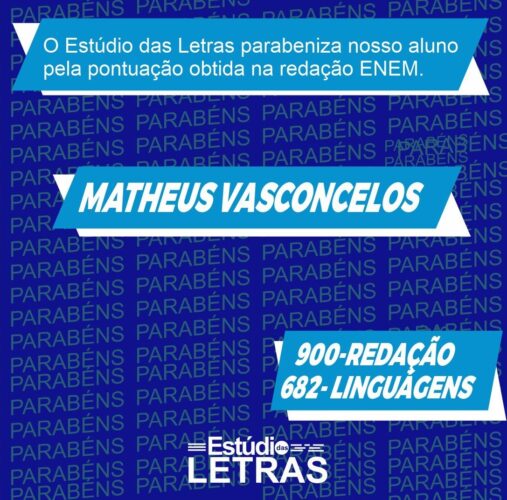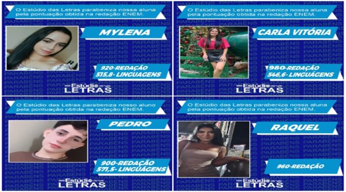Os alunos do Estúdio das Letras tem se destacado nas redações do Enem, a exemplo Carla Vitória (980), Raquel (960), Mylena (920) e Pedro Ferreira (900), que tiraram pontuações excelentes pontuações na edição de 2023. “Isso é comprovado pelas excelentes pontuações alcançadas por seus alunos em edições do Enem. Além disso, alguns alunos conseguiram fechar inteiras provas de Português em concursos, demonstrando o sucesso e as conquistas dos estudantes do Estúdio das Letras. Muitos estudantes obtiveram pontuações altas na região de Patos, inclusive do município de Cacimbas”, disse Matheus.