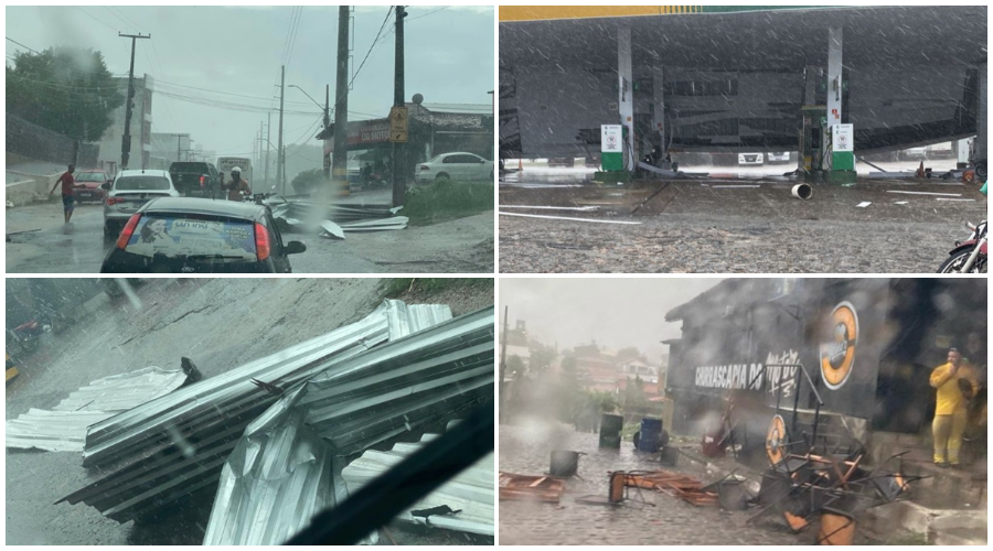 Segundo as primeiras informações, a chuva forte veio acompanhada de bastante vento que causou alguns estragos em vários locais da cidade, incluindo um posto de combustível, bares, restaurantes e residências.