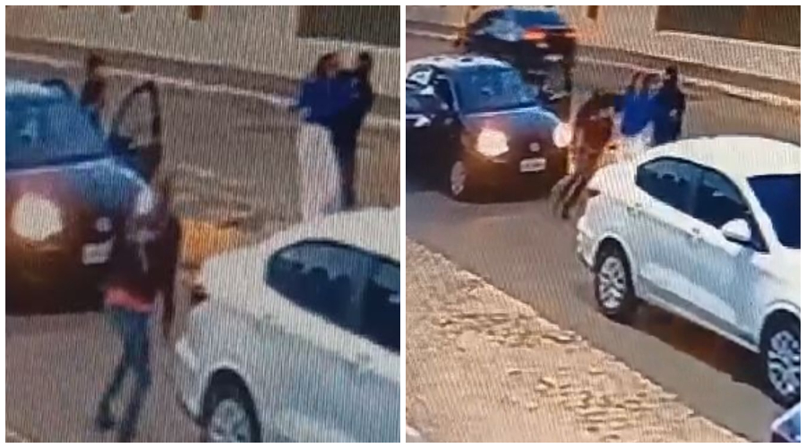 Imagens das câmeras de segurança flagraram toda a ação e registraram quando a mulher foi retirada do veículo e levada para o carro dos criminosos. No veículo da vítima estavam seus filhos, duas crianças.