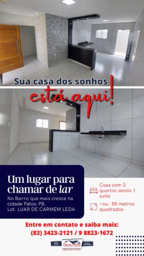 Então não perca essa oportunidade única de adquirir essa linda casa na Rua Padre Acácio Cartaxo Rolim, no Loteamento Carmem Leda, em Patos.