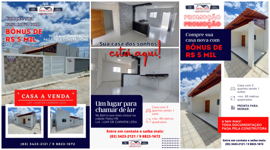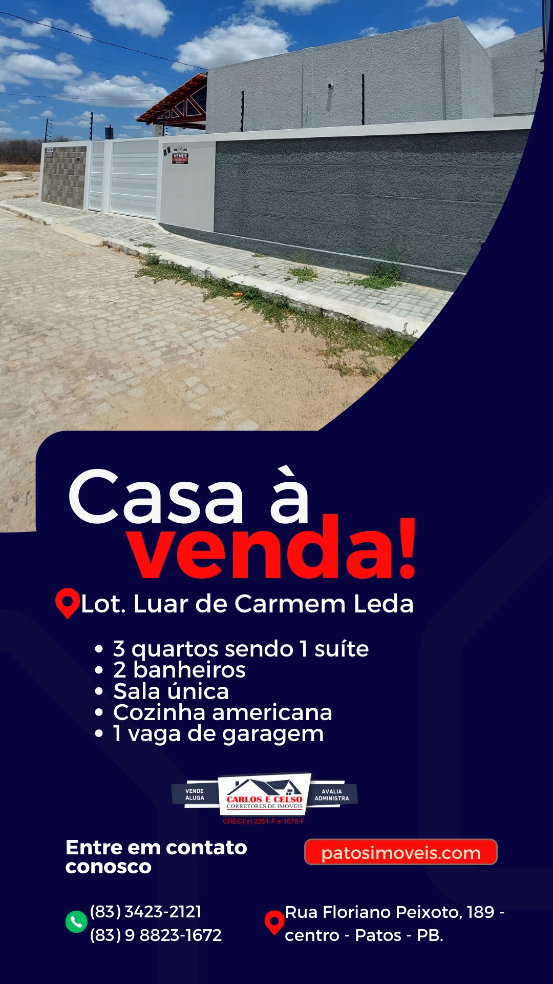 Então não perca essa oportunidade única de adquirir essa linda casa na Rua Padre Acácio Cartaxo Rolim, no Loteamento Carmem Leda, em Patos.