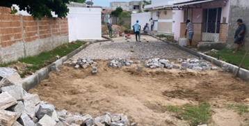Dessa vez, os trabalhos estão voltados para a pavimentação da Rua Domingos Roque que ainda não tinha nenhum tipo de calçamento.
