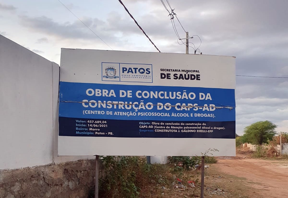 O vereador Jamerson Ferreira cobrou, durante a sessão ordinária da Câmara de Vereadores de Patos, a conclusão da obra do Centro de Atenção Psicossocial Álcool e Drogas (CAPS AD) localizado no bairro Morro, na cidade de Patos. A obra, que está orçada em R$ 457.689,04, está em construção há cerca de 3 anos, apenas para a conclusão.