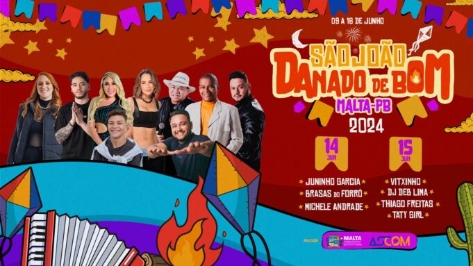 A Prefeitura de Malta, na Região Metropolitana de Patos, através da Secretaria Municipal de Cultura, Esporte e Turismo anunciaram na noite desta quarta-feira (20), a programação do São João Danado de Bom 2024. Entre os dias 9 e 16 de junho (isso mesmo, serão oito dias de festividades), os quais a cidade se vestirá de alegria e tradição, prometendo muito forró e calor humano. Nesse pedaço de chão onde a cultura nordestina pulsa forte, os ritmos se entrelaçam com os passos das quadrilhas e o aroma das comidas típicas, criando um cenário único de celebração e nostalgia. O São João em Malta não é apenas uma festa, é um encontro de gerações, um momento em que o tempo parece parar para que a alegria possa se espalhar por cada canto da cidade.