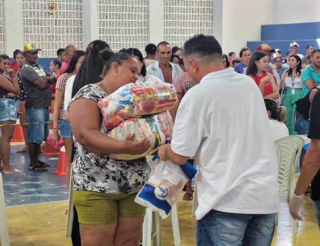 A Prefeitura de Catingueira, na Região Metropolitana de Patos, através da Secretaria do Desenvolvimento Social e Humano (SMDSH), distribuiu na manhã da última quinta-feira, dia 28 de março, mais de 13 toneladas de alimentos, incluindo cestas básicas, peixes e pães, para as famílias da zona urbana e rural da cidade.
