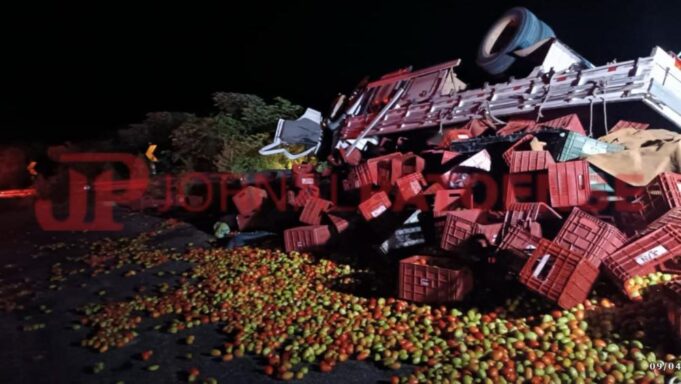 Segundo o jornalista, o acidente ocorreu por volta das 22h30min, envolvendo um caminhão, modelo Volkswagen, de cor branca, carregado com tomates, que acabou tombando no trecho da serra conhecido como “o apertar da hora”.
