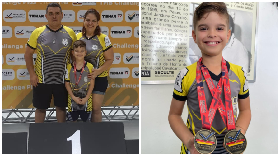 No último fim de semana, o jovem talento do tênis de mesa, Ranieri Lopes Araújo Filho, de apenas 8 anos, representou a cidade de Patos com maestria na 2ª edição do TMB Challenge Plus de tênis de mesa, sediado em Recife (PE). Ranieri brilhou nas categorias Sub 9 e Sub 11, levando para casa duas medalhas de ouro em uma demonstração impressionante de habilidade e determinação.