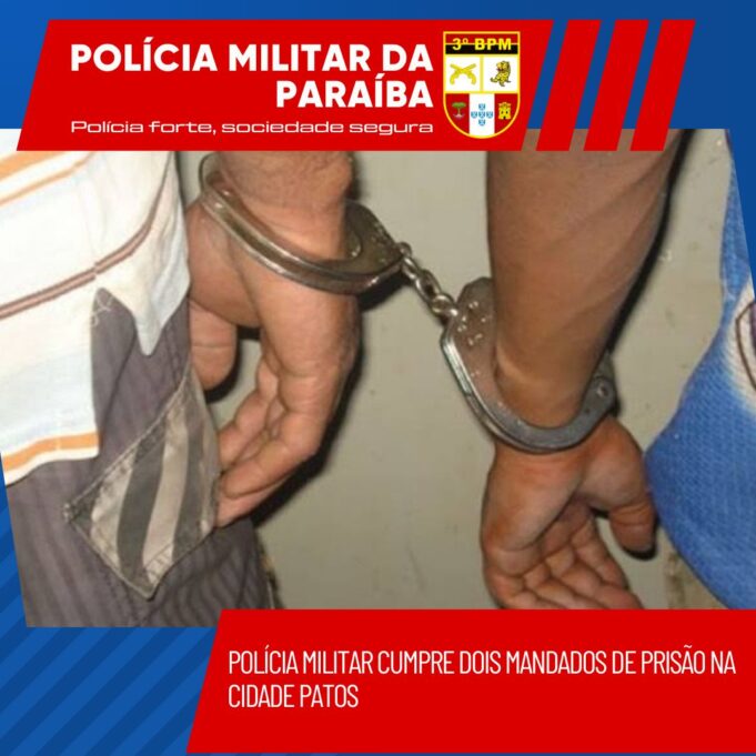 Por volta das 14h desta quinta-feira, 11/04, a guarnição da Rádio Patrulha foi acionada para cumprir dois mandados de prisão na cidade de Patos.