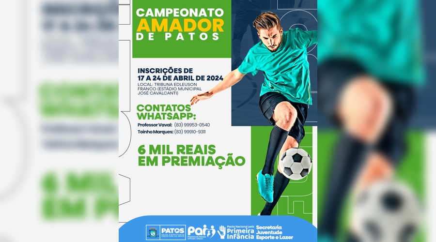 A cidade de Patos, localizada na Paraíba, se prepara para receber o Campeonato Amador de Futebol. Organizado pela Prefeitura de Patos, através da Secretaria de Juventude, Esporte e Lazer (Sejel), o evento promete reunir talentos locais em uma competição cheia de energia e paixão pelo esporte.