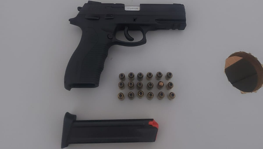 Na busca pessoal foi encontrada em sua cintura uma Pistola cal. 380 carregada com 18 munições intactas.