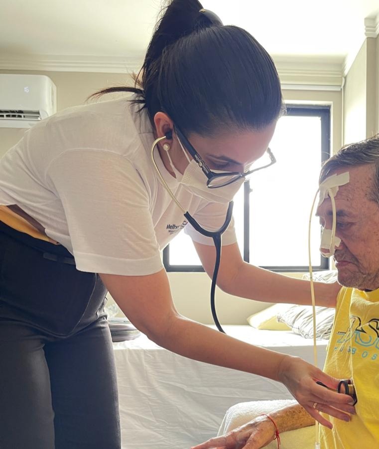 Damiana Vieira, esposa de um paciente atendido pelo programa, testemunha os benefícios transformadores que o Melhor em Casa trouxe para sua vida. Ela ressalta a presença constante e o suporte abrangente fornecido pela equipe, que vai desde a assistência médica até a distribuição de suprimentos essenciais. Para Damiana, o programa não apenas melhorou a saúde de seu esposo, mas também trouxe alívio e conforto para sua família.