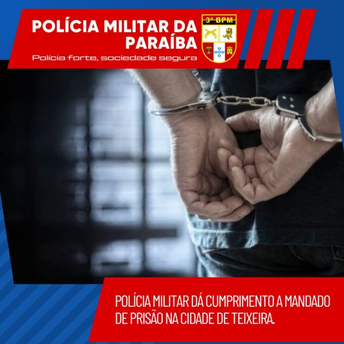 Na manhã desta quarta-feira, 16/05, a guarnição da 4ª Cia/3º BPM realizava o patrulhamento de rotina quando recebeu a informação sobre um mandado de prisão em desfavor de um indivíduo residente na cidade de Teixeira, na Região Metropolitana de Patos.