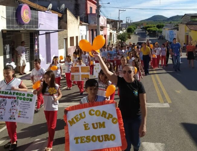 Foi realizada na manhã desta sexta-feira (17), em Cacimba de Areia, na Região Metropolitana de Patos, uma caminhada alusiva ao Dia 18 de maio, dedicado ao combate ao abuso e à exploração sexual de crianças e adolescentes. Organizada pela Secretaria de Assistência Social, Secretaria de Educação, Conselho Tutelar Municipal e com o apoio da prefeitura municipal. A caminhada reuniu representantes das referidas secretarias, dos componenstes do Conselho Tutelar local, além de alunos e professores da Escola Municipal de Ensino Fundamental Dona Capitulina Sátyro.