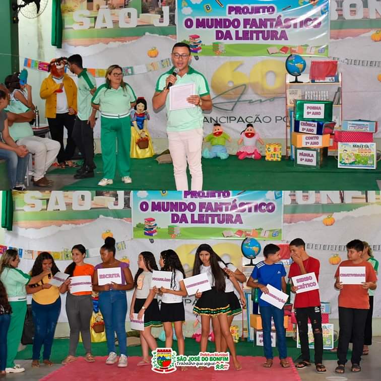 Nesta terça-feira, 28/05, a EMEF Senador Humberto Lucena, em São José do Bonfim, na Região Metropolitana de Patos, realizou a abertura do Projeto “O Mundo Fantástico da Leitura”, idealizado por todos os professores do ensino fundamental dos anos finais, tendo à frente os professores de Língua Portuguesa Edinaldo Lira, Conceição Magalhães e Carlos Ryan Silva, juntamente com a professora de recomposição de aprendizagem Ewanderleia Soares e o professor de Arte Bruno.