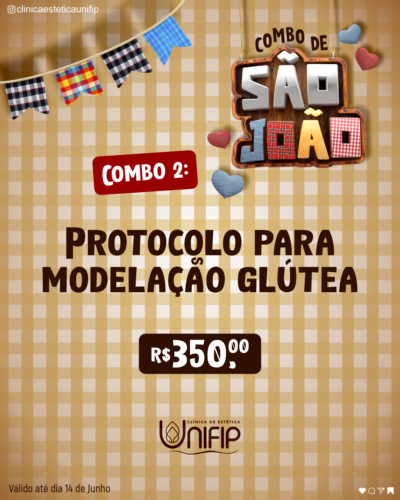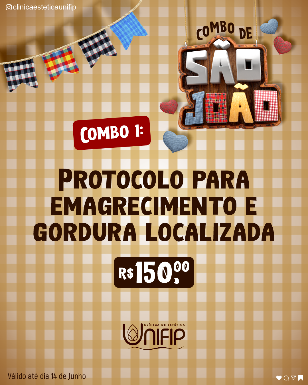 A Clínica de Estética do Unifip lançou dois combos especiais para o São João. São procedimentos corporais, que vão lhe ajudar no emagrecimento e na perda de gordura. Agora vem a melhor parte: preços acessíveis e agenda aberta!