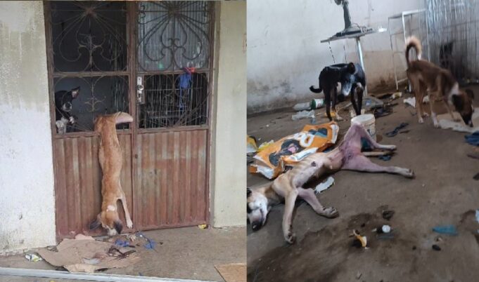 As imagens são fortíssimas. Os cães, em número de cinco, incluindo filhotes, estariam se alimentando das próprias fezes, e uma cadela morreu pendurada na grade de saída da casa ao tentar fugir, tomada pela agonia da prisão, sem ter o que comer nem o que beber.