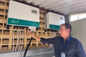 A agenda de transição energética é tocada pela Cagepa desde 2022, e está sendo implementada através de dois grandes passos: a migração para o mercado livre de energia e a implantação de usinas solares. Em João Pessoa, as placas solares foram instaladas no espaço da Estação Elevatória de Esgotos do bairro do Aeroclube, em uma área de mais de 1 mil m². O assessor Antônio Teixeira explica que a energia produzida lá alimenta a Estação de Esgoto e a excedente é encaminhada para outras unidades da Cagepa. “Pela rede de distribuição da concessionária de energia elétrica, podemos ‘transportar’ a nossa energia limpa para onde quisermos. Atualmente, estamos produzindo cerca de 1000 MWh ao ano. Começamos como um protótipo, mas nosso objetivo é continuarmos avançando com a implantação de novas usinas, disse.