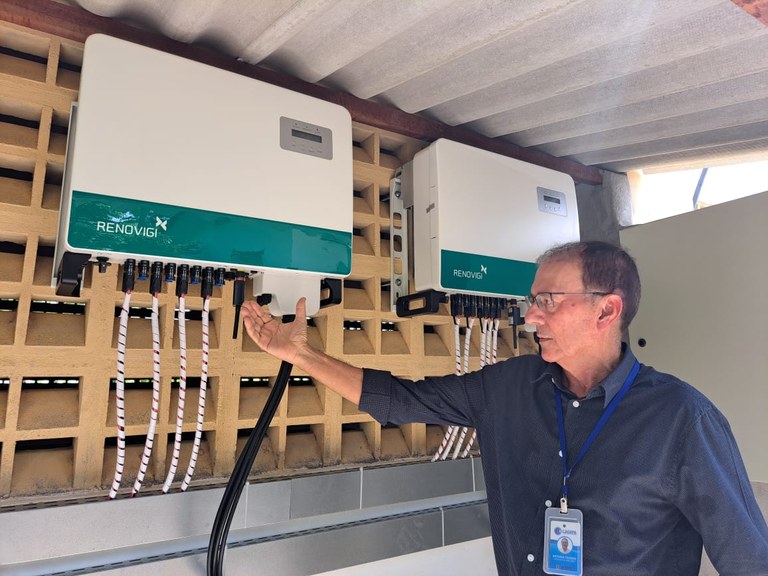 Os inversores também estão instalados na Estação Elevatória do Aeroclube. Pelos equipamentos, é possível acompanhar, em tempo real, no visor ou remotamente por um aplicativo no smartphone do gestor, os acúmulos da energia gerada e as intercorrências.