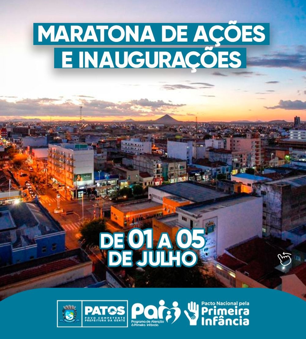 A Prefeitura de Patos deu início nesta segunda-feira, dia 1 de julho, a uma série de ações e inaugurações que prometem transformar a cidade para melhor. De 1 a 5 de julho, a administração municipal estará entregando novos equipamentos, serviços e espaços fundamentais para o bem-estar da população.