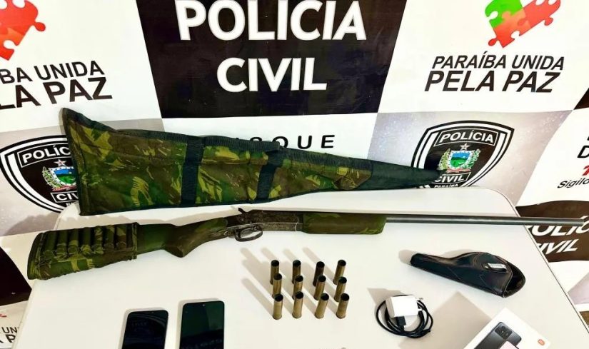 Nesta terça-feira (9), agentes da Polícia Civil conseguiram prender um suspeito e apreender uma espingarda, munições e um celular que havia sido roubado.