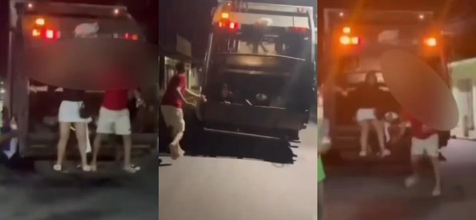 Uma jovem que participava de uma festa neste final de semana no município de Santa Rita, Região Metropolitana de João Pessoa, acabou dentro de um caminhão de lixo ao se arriscar em um caminhão de lixo que passava. O caso aconteceu durante uma festa de aniversário, na Rua Sinésio Rodrigues. Um grupo de jovens estava dançando e se divertindo em torno do caminhão de coleta de resíduos sólidos.