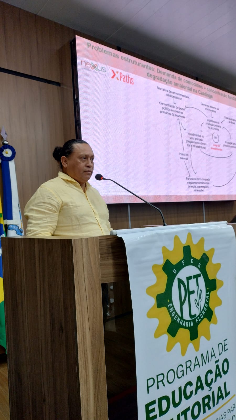 Pérez fez uma apresentação em uma abordagem ilustrativa mostrando a desertificação, a mudança climática e a perda da biodiversidade, a relação entre elas e as alternativas que a própria caatinga está revelando.