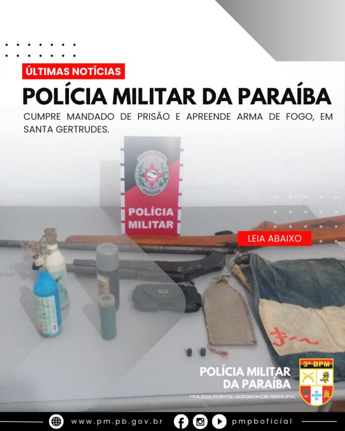 Na tarde desta sexta-feira, 30, uma guarnição de rádio patrulhamento do 3º BPM recebeu a informação sobre um indivíduo que estaria na localidade do Sítio Fechado, distrito de Santa Gertrudes, e que possuía em seu desfavor um mandado de prisão em aberto, expedido pela 6ª Vara Mista de Patos.
