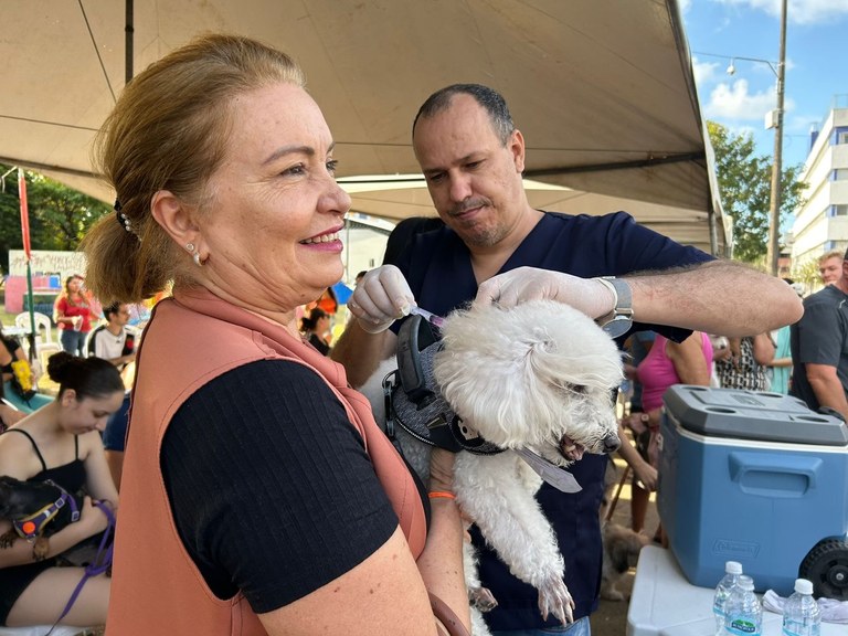 A assistente administrativa Juliana Vieira, além de vacinar “Pingo”, o cão do qual é tutora há cinco anos, aproveitou a ocasião para fazer a vermifugação no animal. “Essas ações são muito importantes, pois nos dá oportunidade de vacinar e de usufruir de outros serviços voltados à saúde do animal”, avaliou Juliana.