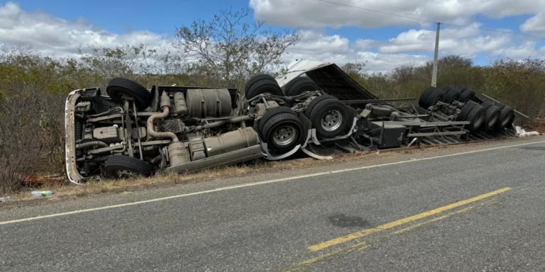 Uma carreta tombou na manhã de hoje na PB-214, entre as cidades de Sumé e Congo, no Cariri do estado, gerando preocupação entre os moradores e motoristas que trafegam pela região. O acidente aconteceu por volta das 6 horas da manhã, quando o veículo, que vinha de São Paulo com destino ao município do Congo, perdeu o controle e saiu da pista. A carreta estava carregada de tecido, o que deixando parte da carga espalhada.