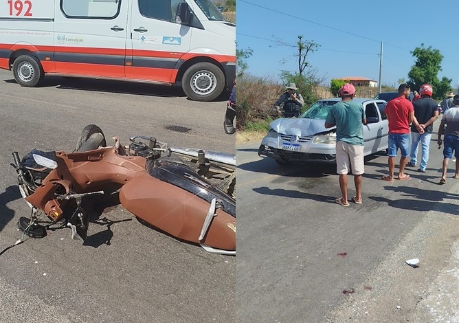 Um homem e uma mulher ficaram feridos, ele em estado grave, durante uma colisão, envolvendo uma moto e um veículo Gol, na manhã desta quinta-feira (5), na PB-400, a cerca de 4 quilômetros do centro de Conceição, no Vale do Piancó.