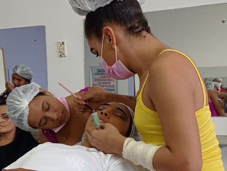“Algumas delas não sabiam nada sobre maquiagem, outras estavam inseguras no momento de preparação da pele da cliente, de fazer a maquiagem e identificar qual produto era o correto para o tom de pele da cliente, mas com o desenvolvimento das aulas práticas, elas estão seguras e com projetos para seguir nesta profissão de maquiadora”, comemora a professora Avanete.