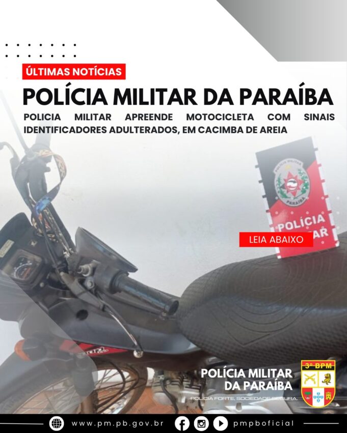 Na manhã desta terça-feira, 10, uma guarnição da 4ª Cia/3º BPM realizava rondas ostensivas no Sítio Liberdade, em Cacimba de Areia, na Região Metropolitana de Patos, quando abordou um veículo Saveiro de cor branca, que transportava também uma motocicleta tipo Pop, de cor preta.