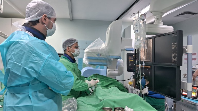 “O procedimento é minimamente invasivo, feito na própria Hemodinâmica. Não ocorrendo intercorrência, ao término o paciente vai para enfermaria e, continuando tudo bem, recebe alta hospitalar no dia seguinte. Em 15 dias, ele já pode voltar às suas atividades sem restrição alguma”, explicou o especialista.