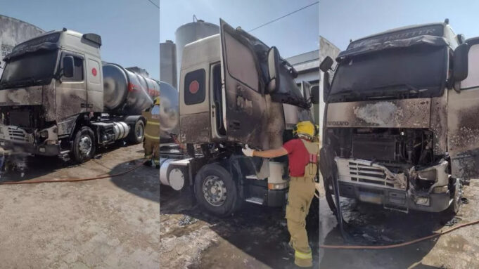 Na tarde desta segunda-feira (23), um incêndio em uma carreta de transporte de combustível mobilizou o Corpo de Bombeiros no bairro da Liberdade, em Patos. O incidente ocorreu nas imediações da Rua Adélia Urquiza, próximo à sede do Engarrafamento Coroa, por volta das 14h, e o fogo atingiu principalmente a cabine do veículo, modelo Volvo FH12 380, ano 2003, de cor branca.