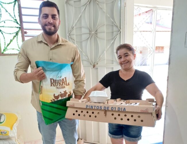 O Kit Granja inclui 50 pintos e um conjunto completo com bebedouro, comedouro, vacinas e ração, garantindo um mês de alimentação saudável e de qualidade para as aves. Nesta terceira etapa, 12 famílias do Programa Agricultura Familiar foram beneficiadas, fortalecendo a comunidade rural e promovendo o desenvolvimento sustentável da região.