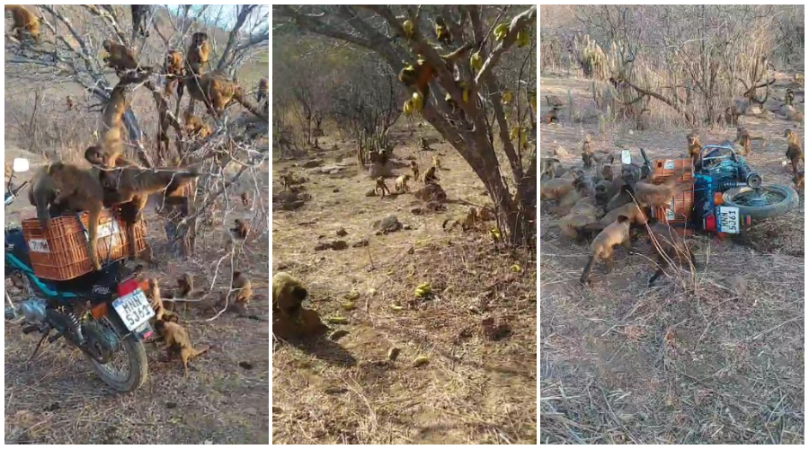 Como ocorre todos os anos de seca, os macacos desceram mais uma vez a Serra de João Ferreira, em Vista Serrana, na Região Metropolitana de Patos, em busca de água e comida.