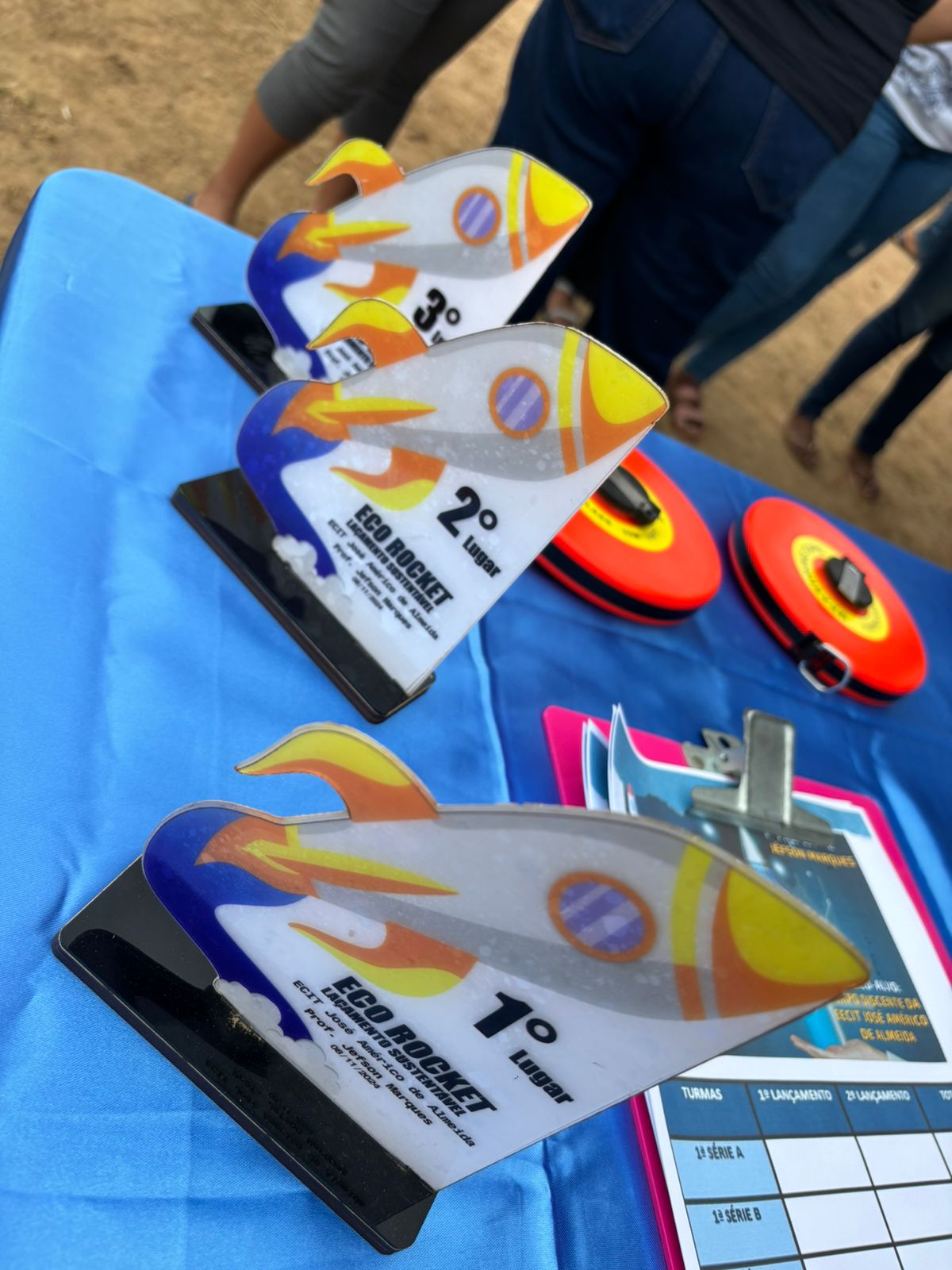 A competição, que consistia em alcançar a maior distância com foguetes feitos de garrafa PET e cano de PVC, foi um sucesso absoluto, com um foguete atingindo impressionantes 125 metros de distância.