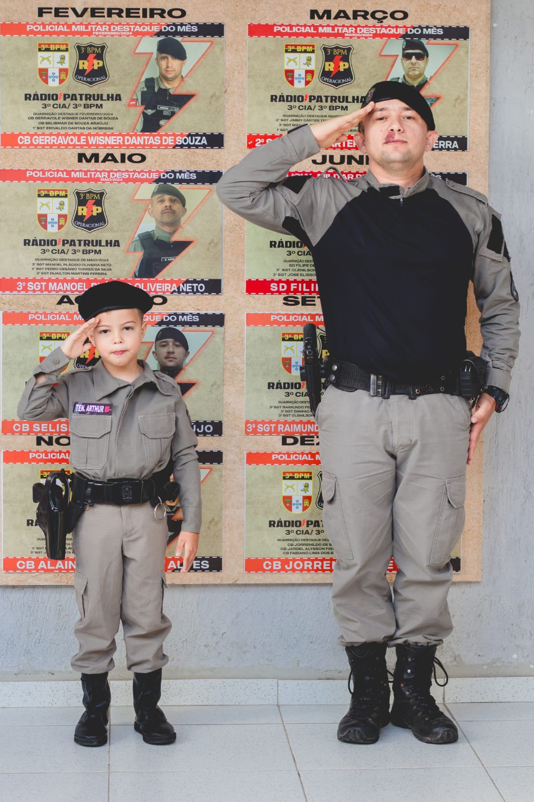 Assim, fardado como um legítimo PMPB, Arthur foi convidado a conhecer o interior do quartel e de uma viatura, além de fazer registros com fotos junto policiais de serviço, prestando sua continência e respeito após a visita inusitada.