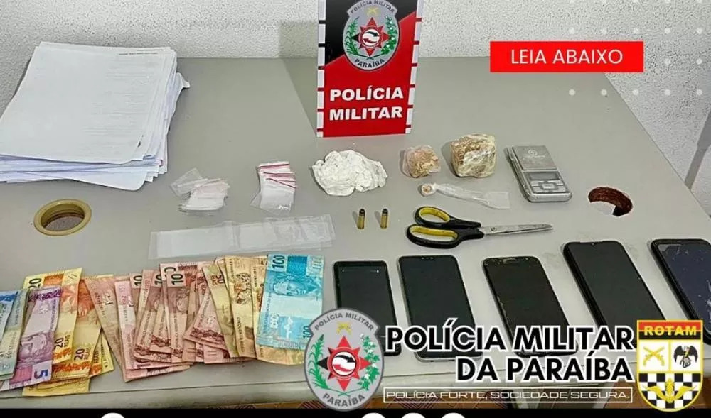 Ao ser abordado, o homem admitiu que a sacola continha drogas. Durante as buscas, os policiais localizaram dois pacotes contendo crack e um pacote contendo cocaína, além de porções menores das mesmas substâncias, prontas para consumo. Além dos entorpecentes, foram apreendidos material de embalagem, cinco celulares, uma balança de precisão, duas munições calibre .32 e R$ 670,00 em dinheiro.