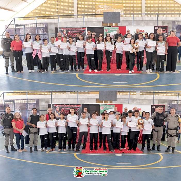 Na última quarta-feira, dia 13 de novembro, aconteceu, no Ginásio da Escola Municipal de Ensino Fundamental Senador Humberto Lucena, em São José do Bonfim, na Região Metropolitana de Patos, a Solenidade de Formação do Curso do PROERD (Programa Educacional de Resistência às Drogas e à Violência).