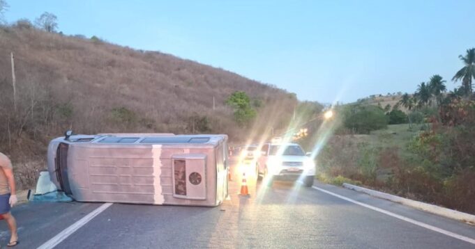 Um acidente do tipo tombamento foi registrado por volta das 17h deste domingo (24) na BR-230, próximo ao município de Riachão do Bacamarte, na Paraíba. O incidente ocorreu no km 124, no sentido Campina Grande, envolvendo uma van que transportava sete passageiros.