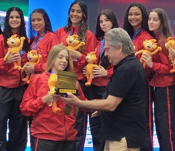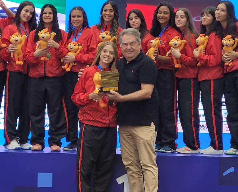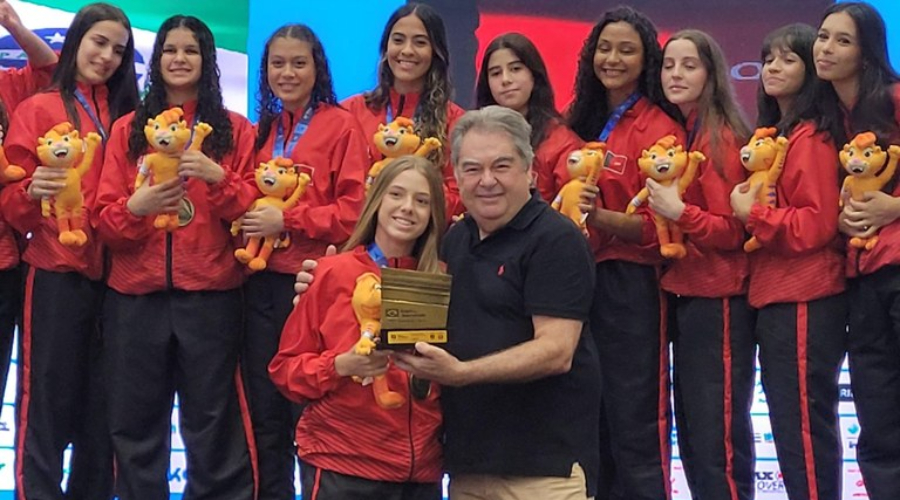 Bronze Revezamento 4×100 Medley: Ian Aleixo, João Gabriel Oliveira, Giovana Campos e Maria Luiza Aragão