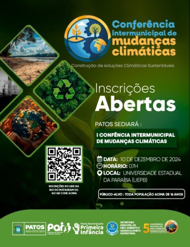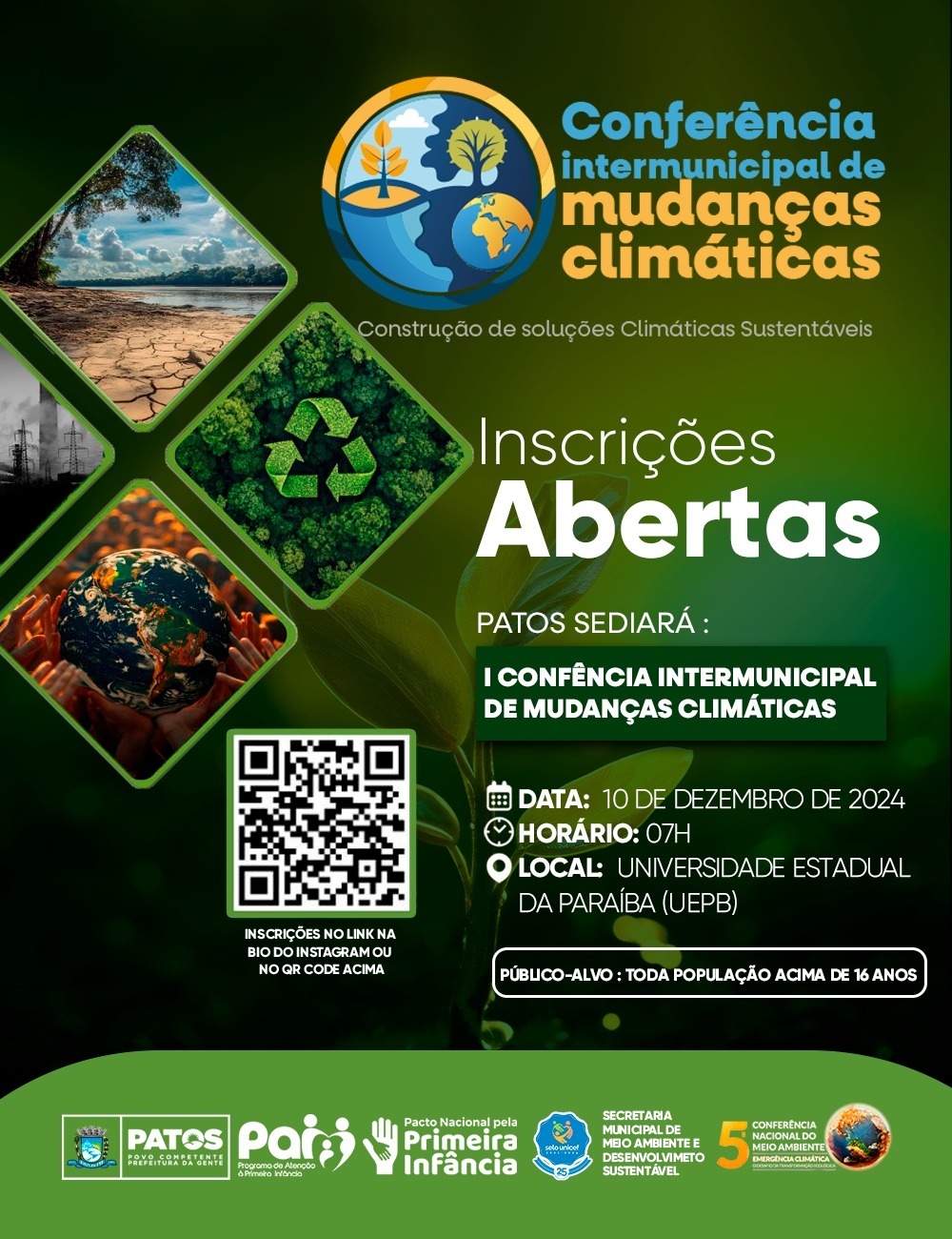 A Prefeitura de Patos, por meio da Secretaria Municipal de Meio Ambiente e Desenvolvimento Sustentável (Semads) abriu as inscrições para a I Conferência Intermunicipal de Meio Ambiente, que acontecerá no próximo dia 10 de dezembro, às 7h, no auditório da Universidade Estadual da Paraíba (UEPB), em Patos.