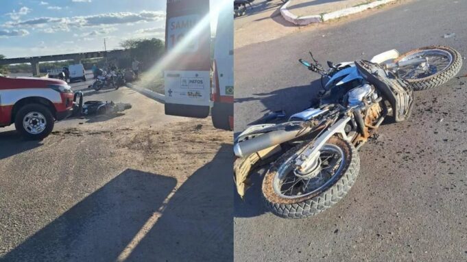 Na tarde deste sábado, 30 de novembro, um grave acidente foi registrado nas imediações do Canal do Frango, próximo ao Batalhão do Corpo de Bombeiros, em Patos. A colisão envolveu uma van modelo furgão de cor branca, e uma motocicleta Honda Bros, também de cor branca.
